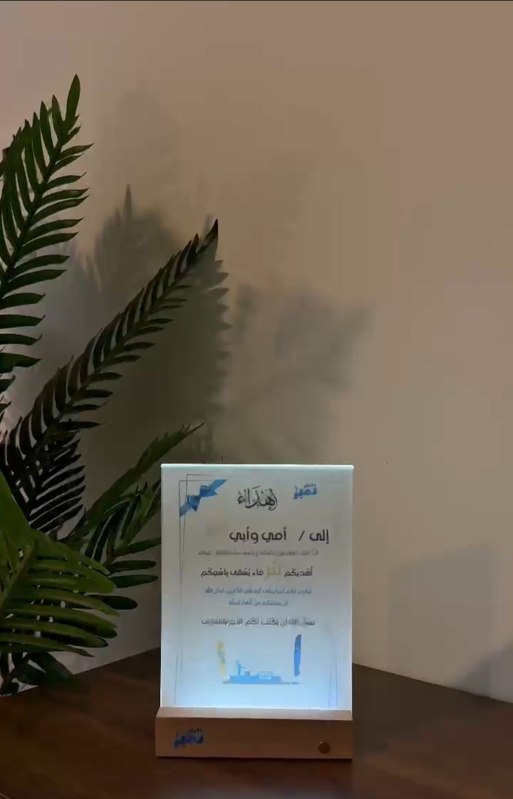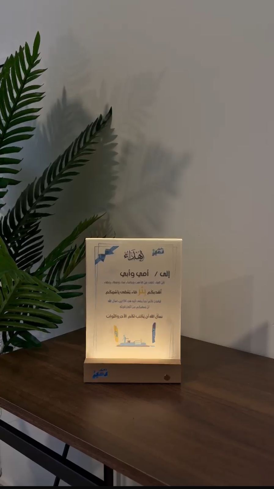 A dedication message written from your own words and lit up for your loved ones, a perfect gift featuring a touchless light button, embracing the future and modern technology.”